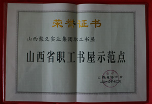 | 2012.6 | 山西聚義實業(yè)集團 | 山西省2011年度創(chuàng)建學(xué)習(xí)型企業(yè)先進單位 | 山西省成人教育協(xié)會 |