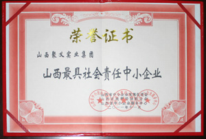 | 2009.9 | 聚義實業(yè)集團 | 山西省最具社會責(zé)任感中小企業(yè) | 山西省中小企業(yè)發(fā)展促進會 |