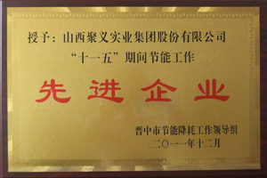 | 2012.12 | 山西聚義實業(yè)集團 | 技術(shù)創(chuàng)新先進企業(yè) | 晉中市中小企業(yè)局 |