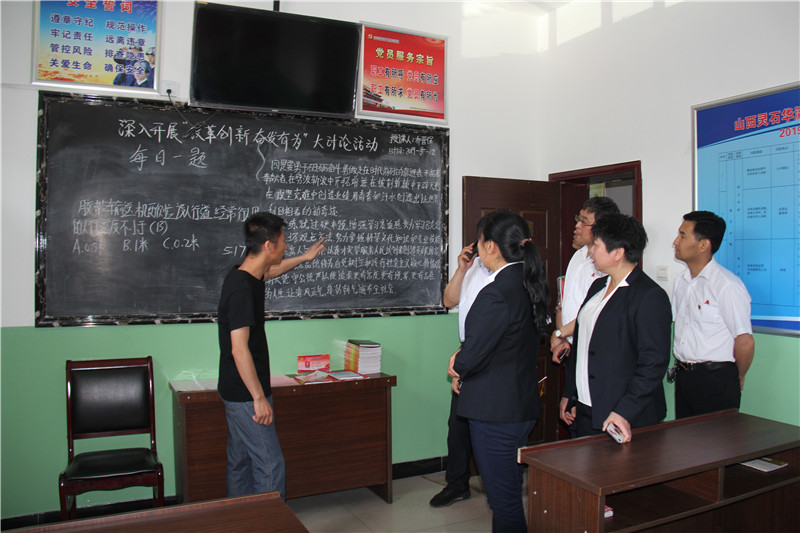 在華瀛天星集廣煤業(yè)辦公室主任兼工會(huì)主席、黨建辦主任張振國(guó)的陪同下,聚義集團(tuán)黨委成員一行先后參觀了天星集廣煤業(yè)黨支部黨員活動(dòng)室、機(jī)電科、機(jī)修車間、“五小”成果展示區(qū)、井口黨支部、井口群眾安全工作站、安全文化走廊、頭燈房、集廣煤業(yè)創(chuàng)新工作室、洗衣房等地,聚義集團(tuán)黨委成員一行對(duì)華瀛天星集廣煤業(yè)的黨建工作、先進(jìn)技術(shù)設(shè)備、經(jīng)營(yíng)管理理念、環(huán)境衛(wèi)生管理均贊嘆不已。